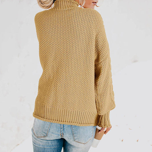 Casual Women's Thick Thread High Neck Pullover Sweater