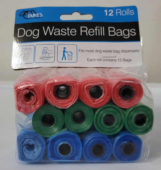 Pet Dog Waste Refill Bags 12 Rolls 3 colors 15 bags per Roll