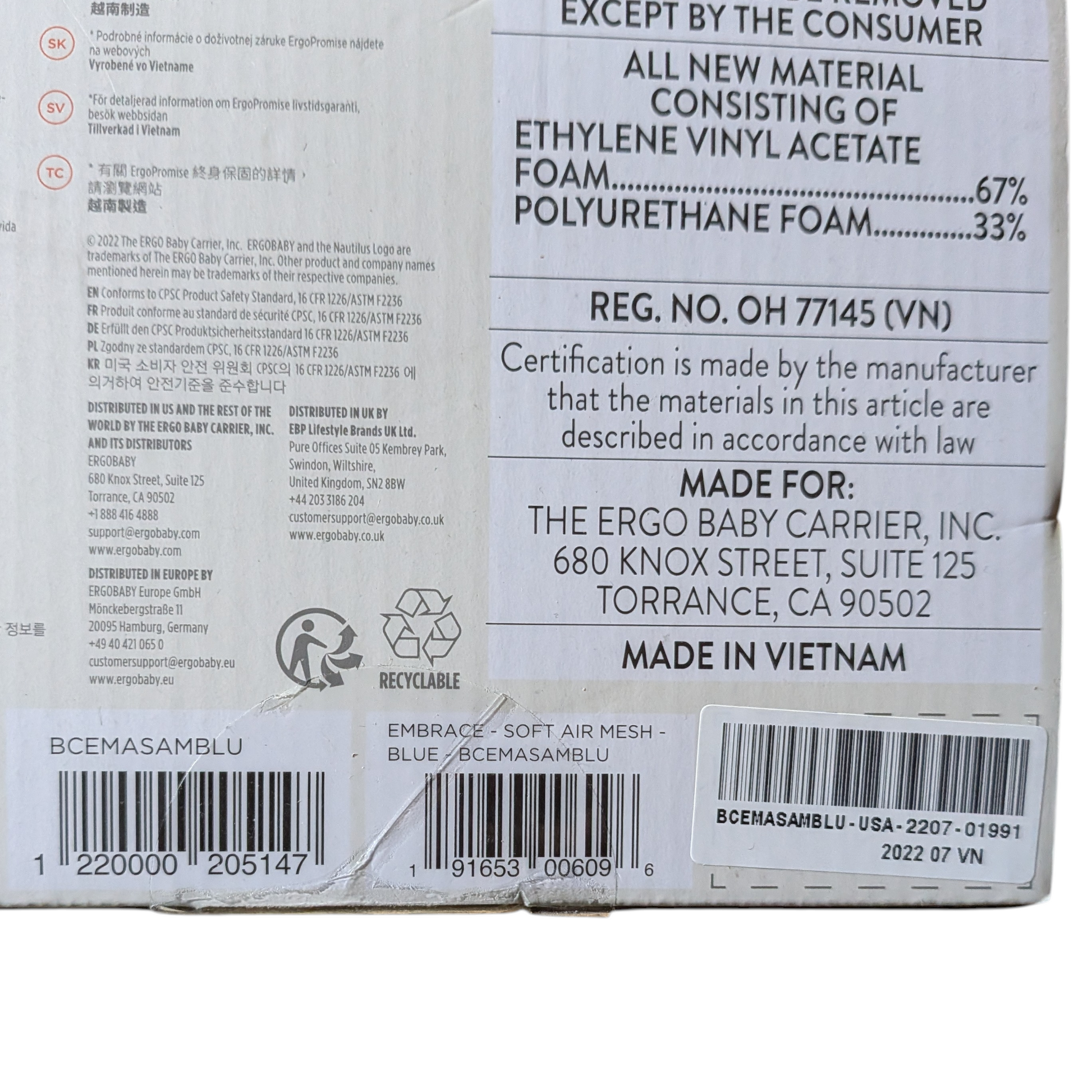 Ergobaby Embrace Cozy Soft Air Mesh Newborn Baby Carrier Blue